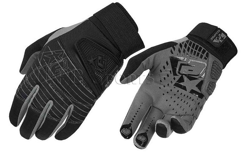 This is the newest version of full finger gloves from Planet Eclipse. Features a velcro wrist closure, padding in just the right spots, and a neutral black and gray colorway.