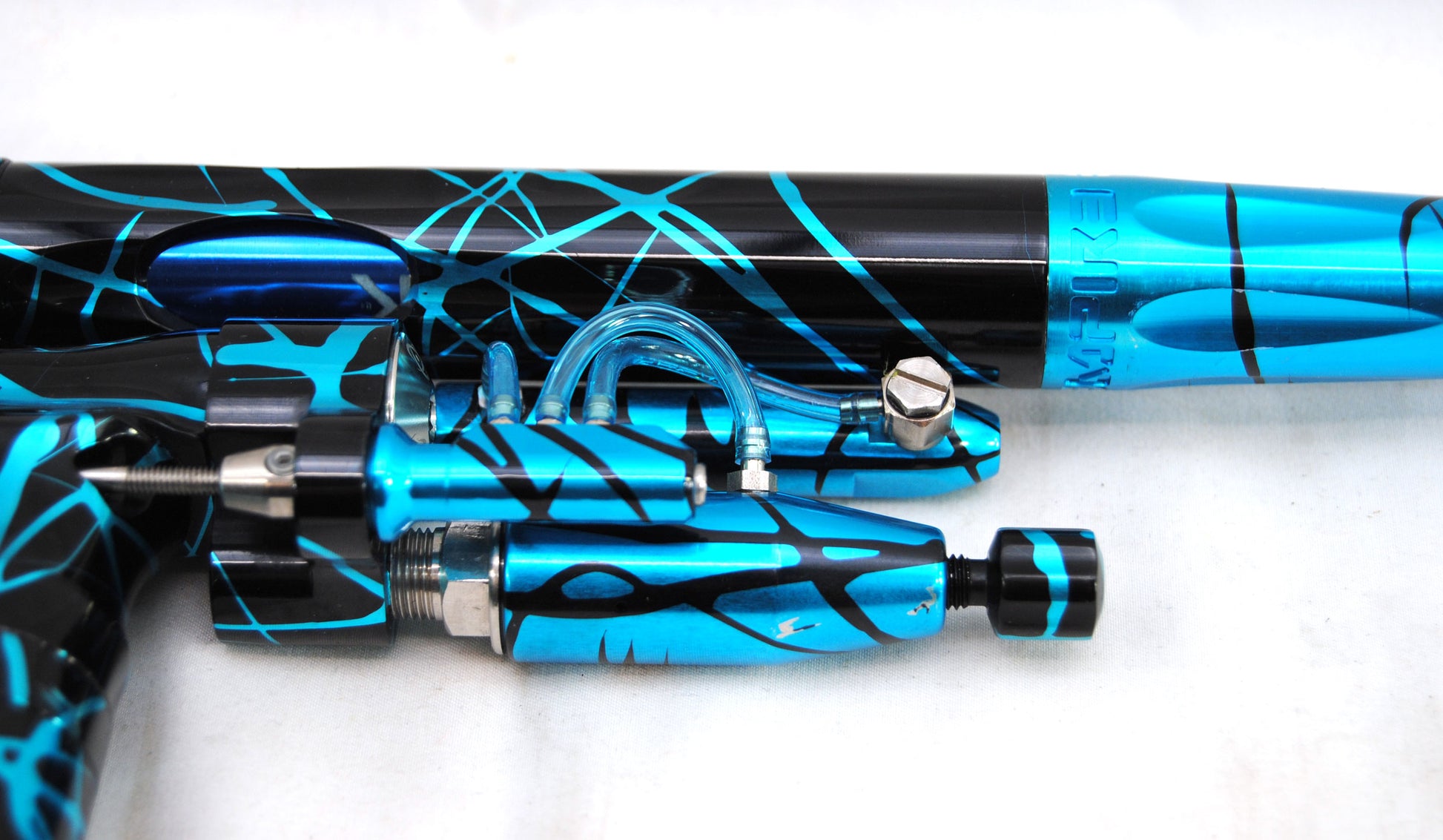Used Inception Designs FLE Midblock Autococker with E2 E-Blade - Teal Black Splash