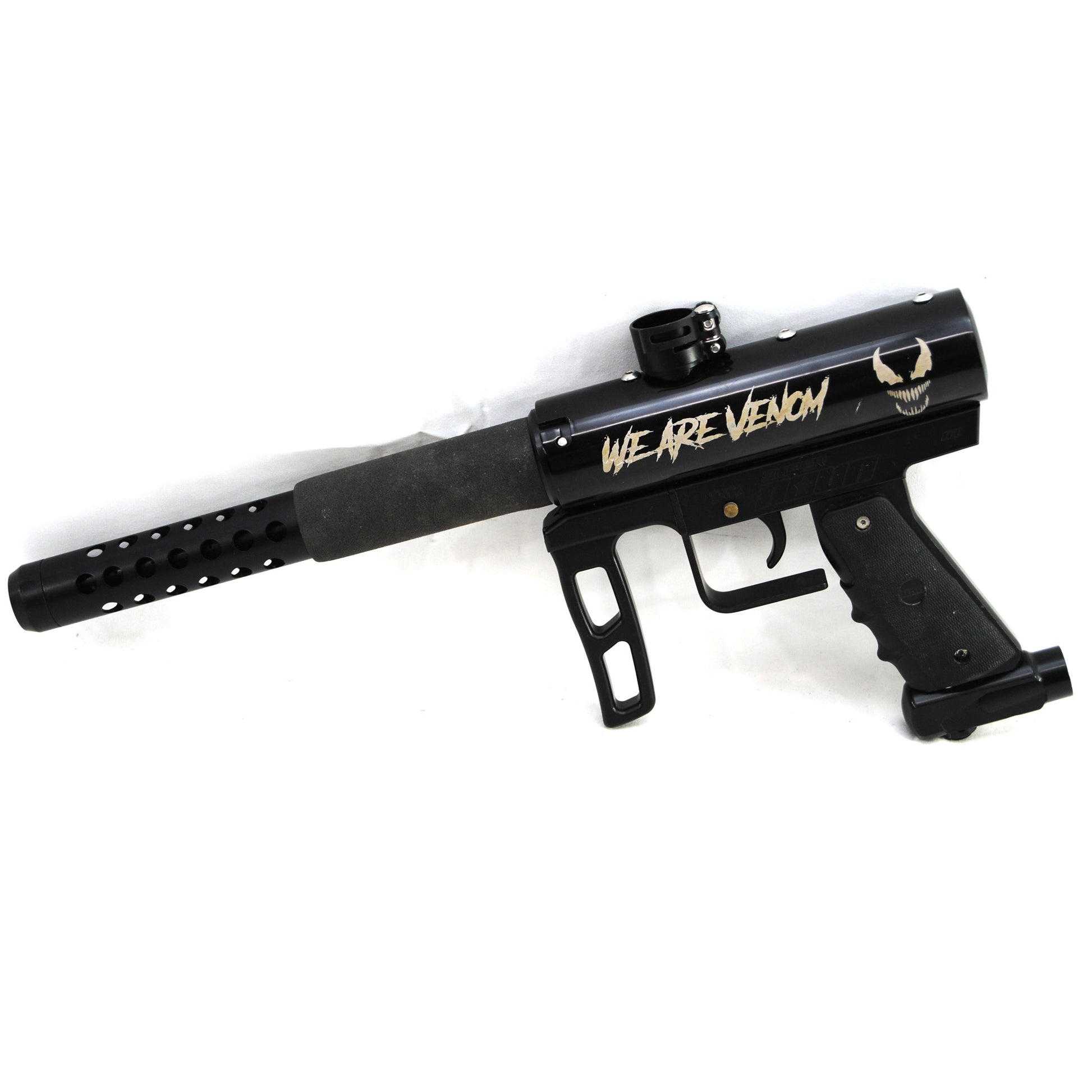 This marker comes with everything shown in the pictures. The marker has paint blemishes on the barrel and grips as well as scratching on the barrel tip and body. It has been tested by our trained technician and was found to be in working condition.
