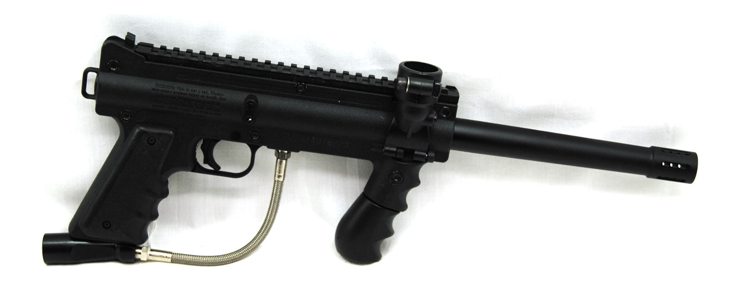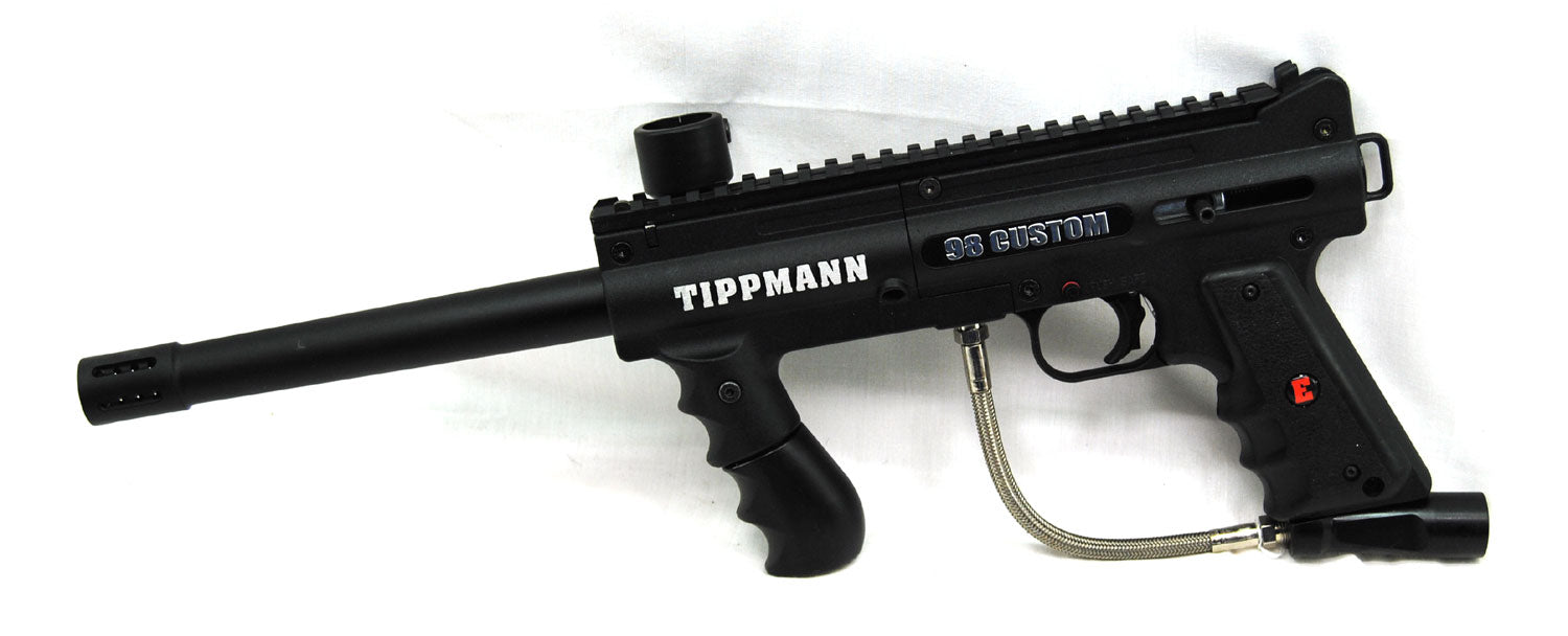 This is for a used Tippmann 98 Custom Platinum Series Paintball Gun. This marker has an E-Grip installed to allow you to do "Full Auto". This marker has been tested and been found to be in working condition. Marker has normal worn from use and play.